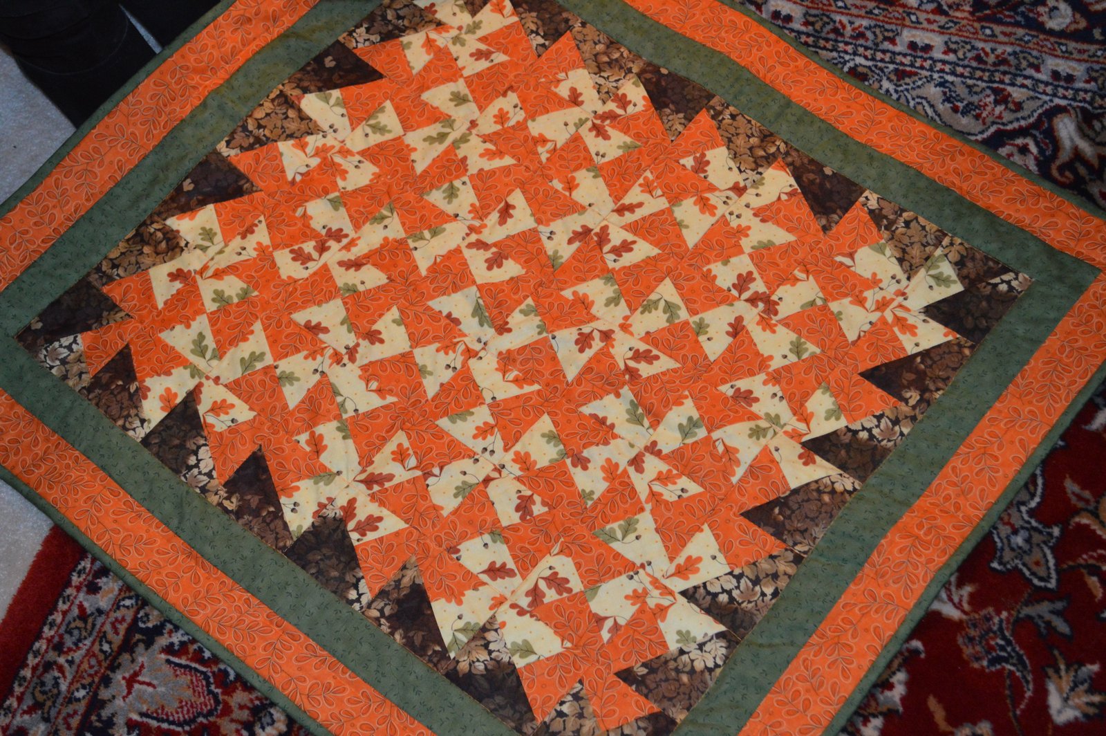 Denise brought in her latest quilt - and it wasn't paper pieced! We all gasped when she told us that because she is the Queen of paper piecing! This is perfect for Fall!