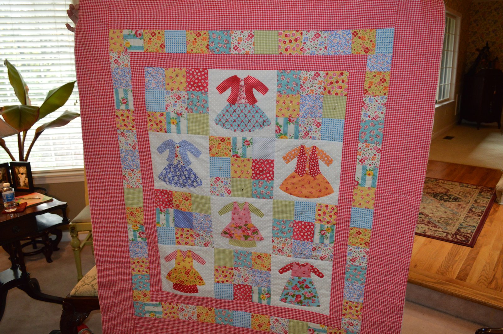 Marsha brought in another adorable dress quilt. This one she made for her niece and Marsha is hand-quilting it! At our Christmas exchange last year I came home with one of those dress panels and when I saw Marsha's quilt it jogged my memory...so I dug out that panel (it has now aged for an appropriate amount of time) and I'm going to try to finish it for a Christmas gift...not necessarily THIS Christmas!