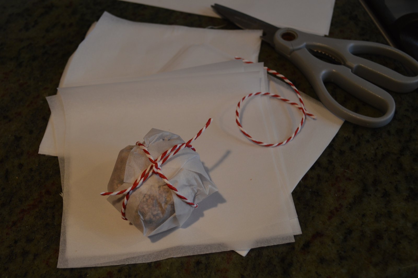 The scent of Christmas will be in the air as you roll these into little balls...about the size of a tennis ball or maybe a bit smaller. Roll the balls into sesame seeds and that's it! They are ready to be wrapped (in parchment paper so the balls can dry out/firm up a bit) and gifted to your worthy friends! Add a Christmas ribbon, a sprig of holly and a cute tag so they'll know to slice into the ball and not bite into it...although I suppose they could, but it would be ever so much nicer and civilized if they didn't!