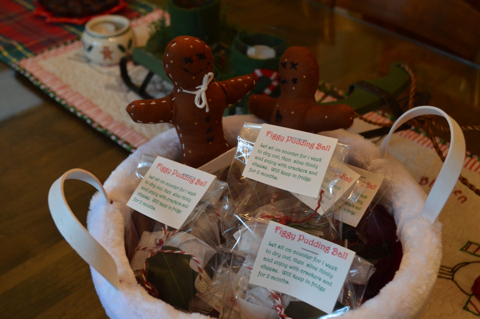 Since I was giving this batch of Figgy Pudding Balls to friends the day I made them, I needed to attach a little tag telling them to let the ball sit on their counter to firm up a bit before they cut into it. Although it's not really necessary...if you cut into it the day it's made or the next day, it's a bit sticky, but still very delicious.