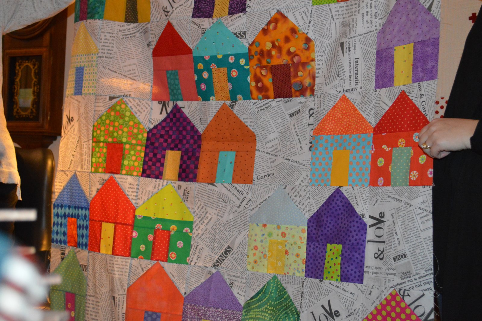 This was our group project last year - to make house blocks for each other. Barbara already has her blocks sewn together - she's been busy! I like her newsprint background fabric and especially like how you can see the word LOVE. This turned out really nice - I wonder what I did with my house blocks???