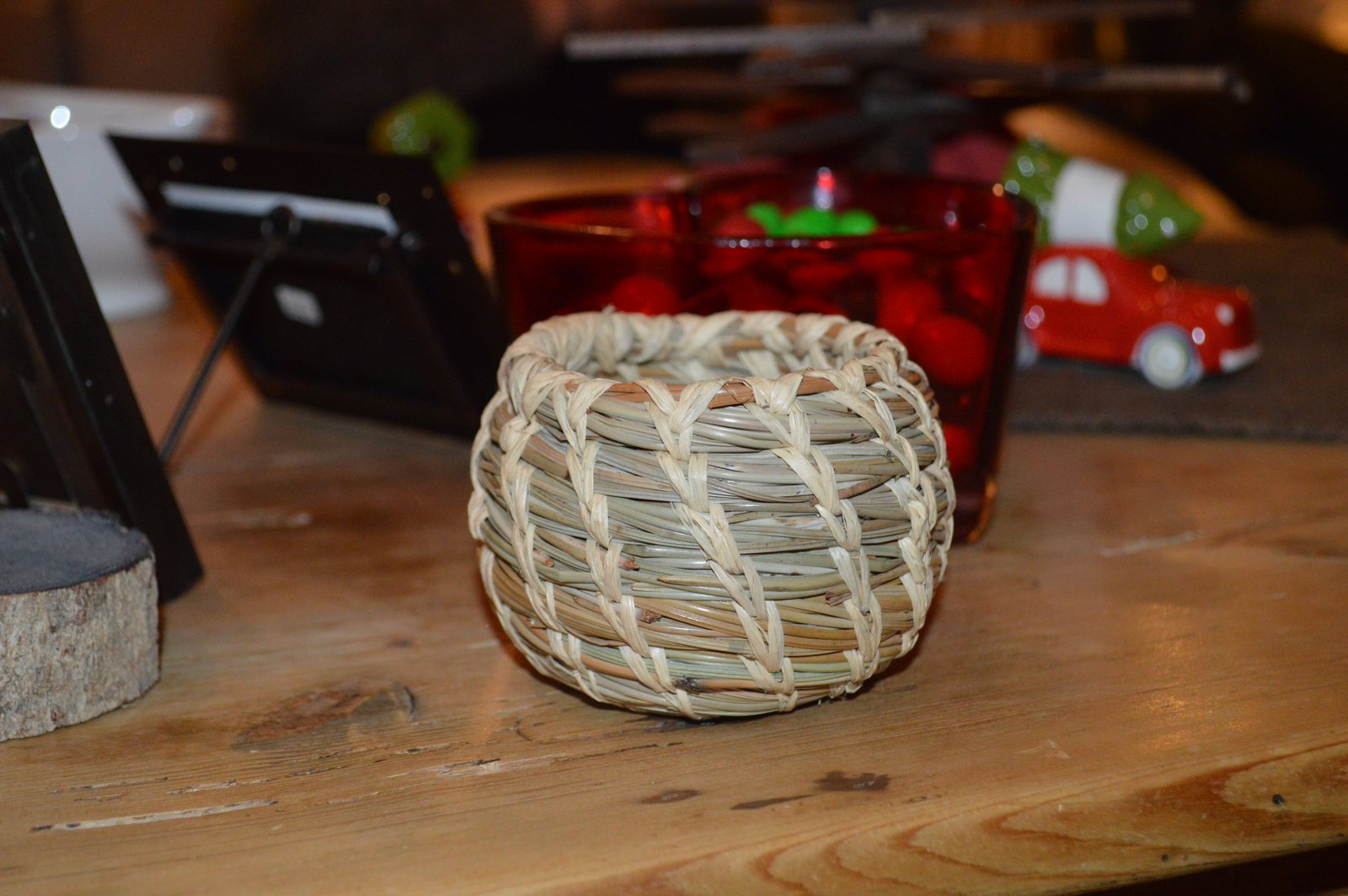 Stephanie has been taking basket-weaving classes and this one is made out of pine needles. I don't remember how long she said it took her to make, maybe a couple of hours. I'd say that was a great use of time!