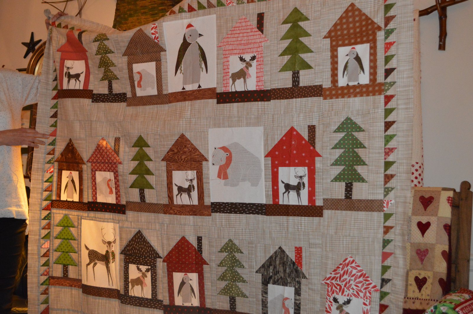This is Barbara's Winter Wonderland quilt. This is such cute fabric, I love the animals and how Barbara has set them inside and outside her blocks. Notice the saw-tooth border - wow, that's a lot of work! Way to go Barbara! Diane made a quilt very similar to this, and she brought her quilt in a few months back - it would be fun to see them side by side...hint, hint!