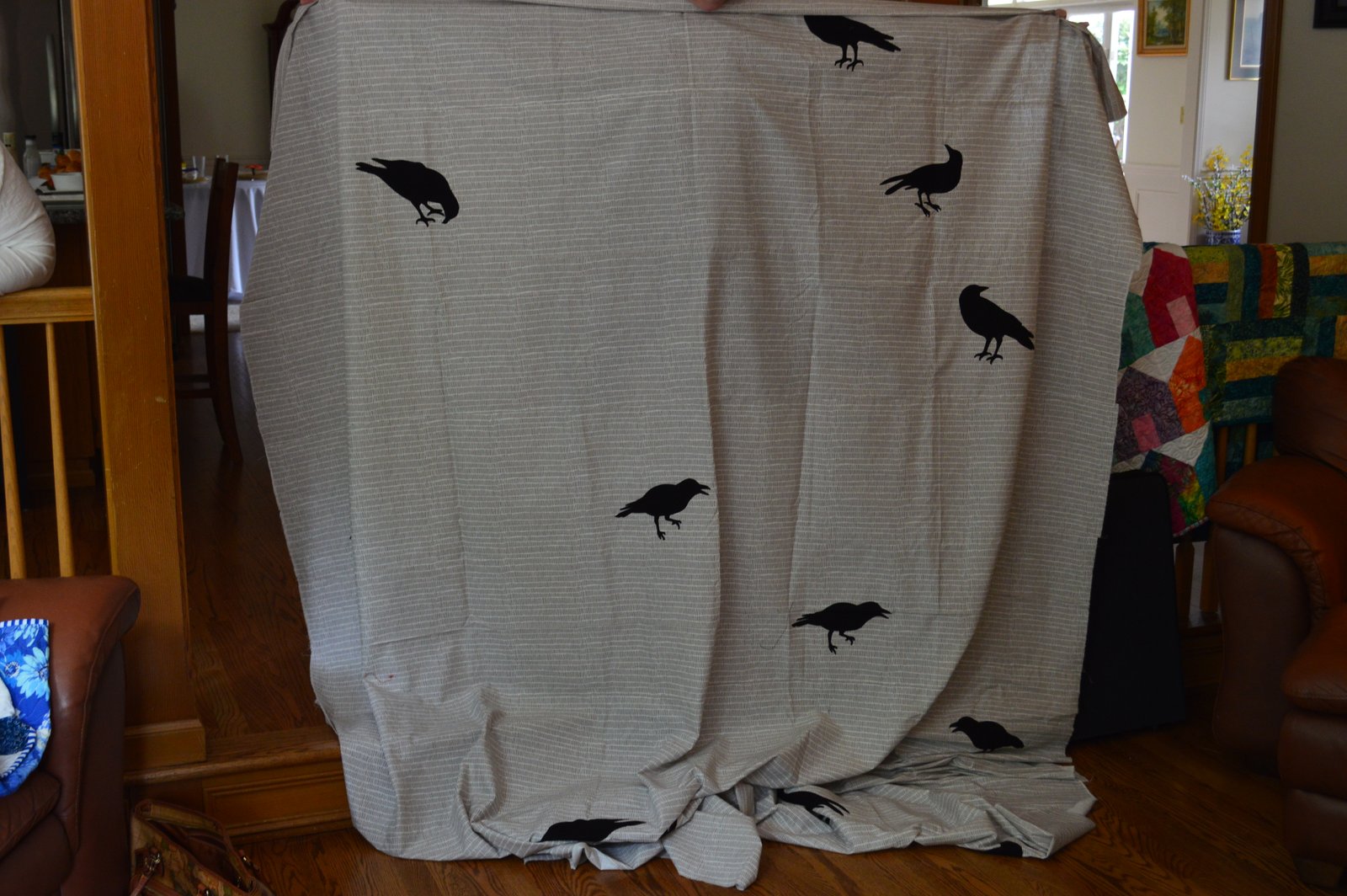 I didn't get a very good picture of this massive Halloween quilt Kareena is making. She is going to have barbed-wire quilted into the quilt...pretty cool! The pattern for the crows came from Martha Stewart, so you know it's a good thing.