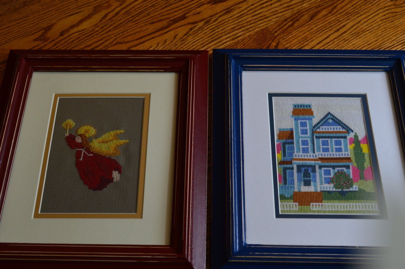In my notes I wrote down that Denise made these cross-stitched pictures but then I wrote her grandma did...maybe she made them for her grandma?? I can barely keep things straight, even when I write then down! But no matter, they are wonderful, whoever made them!