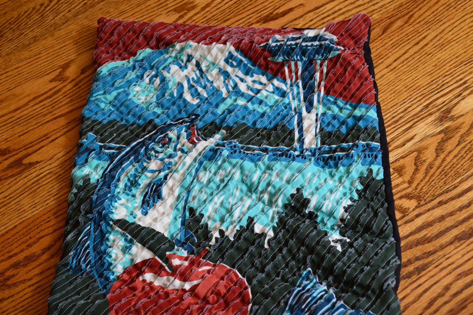 Janet bought this panel and then "chenilled" it and made it into a pillow. I think it's pretty dang swell...people still say swell, right? The pillow has been washed but it might take another few washings before the fabric is truly like a chenille.