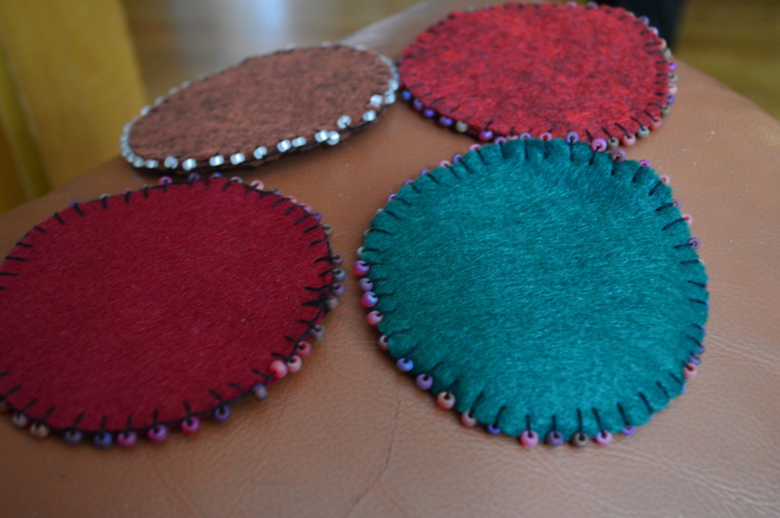 Check out these coasters Denise made - they are beaded all the way around! So cute! Denise brought some other fabric coasters she made, the kind that go around the bottom of a wine glass, but I failed to get a picture of them! So sorry!