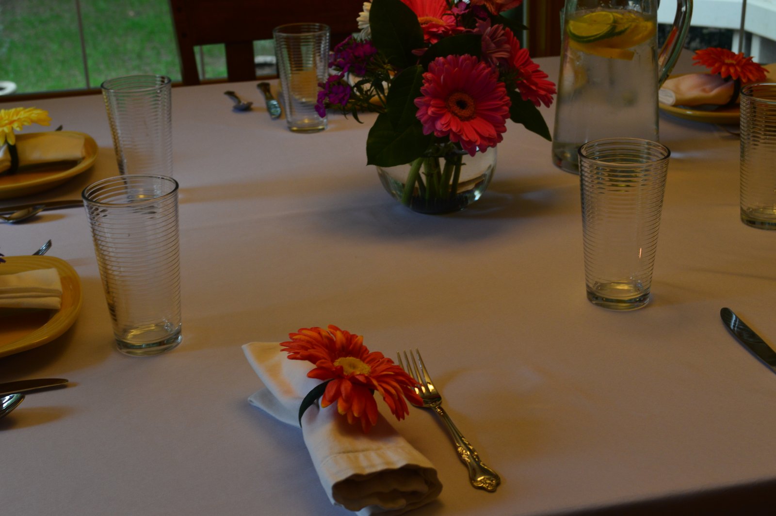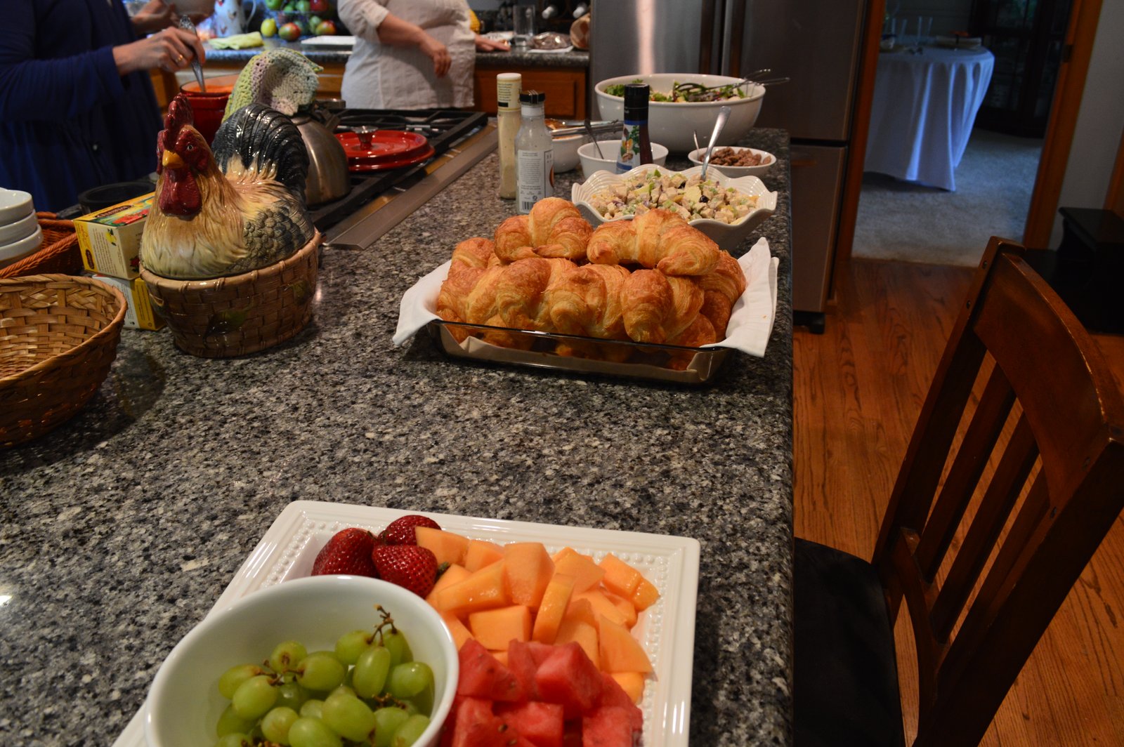 I'll leave you with a picture of the pretty table Diane set for us and a picture of some of the food she made...chicken salad sandwiches with croissants, a delicious green salad, her signature tomato bisque soup and cheesecake with strawberries! I think there was something else, too, she always takes good care of us! Thanks Diane!