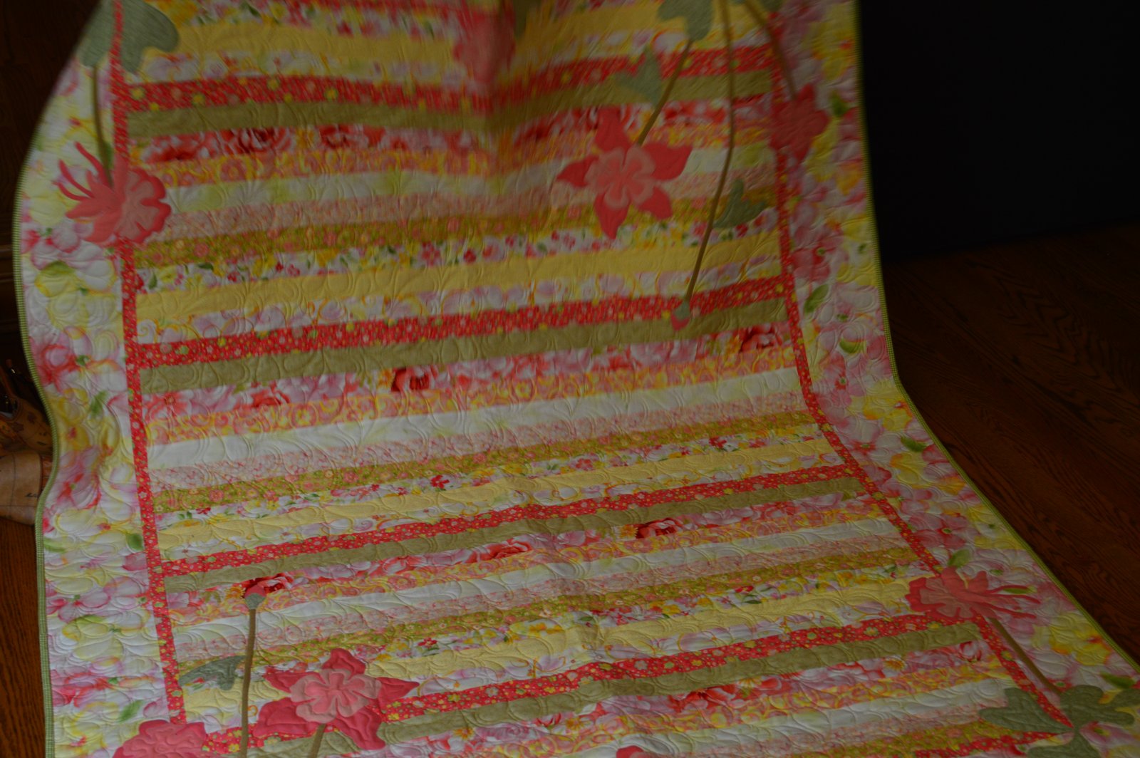 This is another quilt Terry pulled from her project pile and finished...wonder how many she has left to do?? I'm so impressed with all Terry manages to get done...I love the flowers in this quilt - years ago I made a flower quilt and I've been thinking of many another one...maybe in my next life.