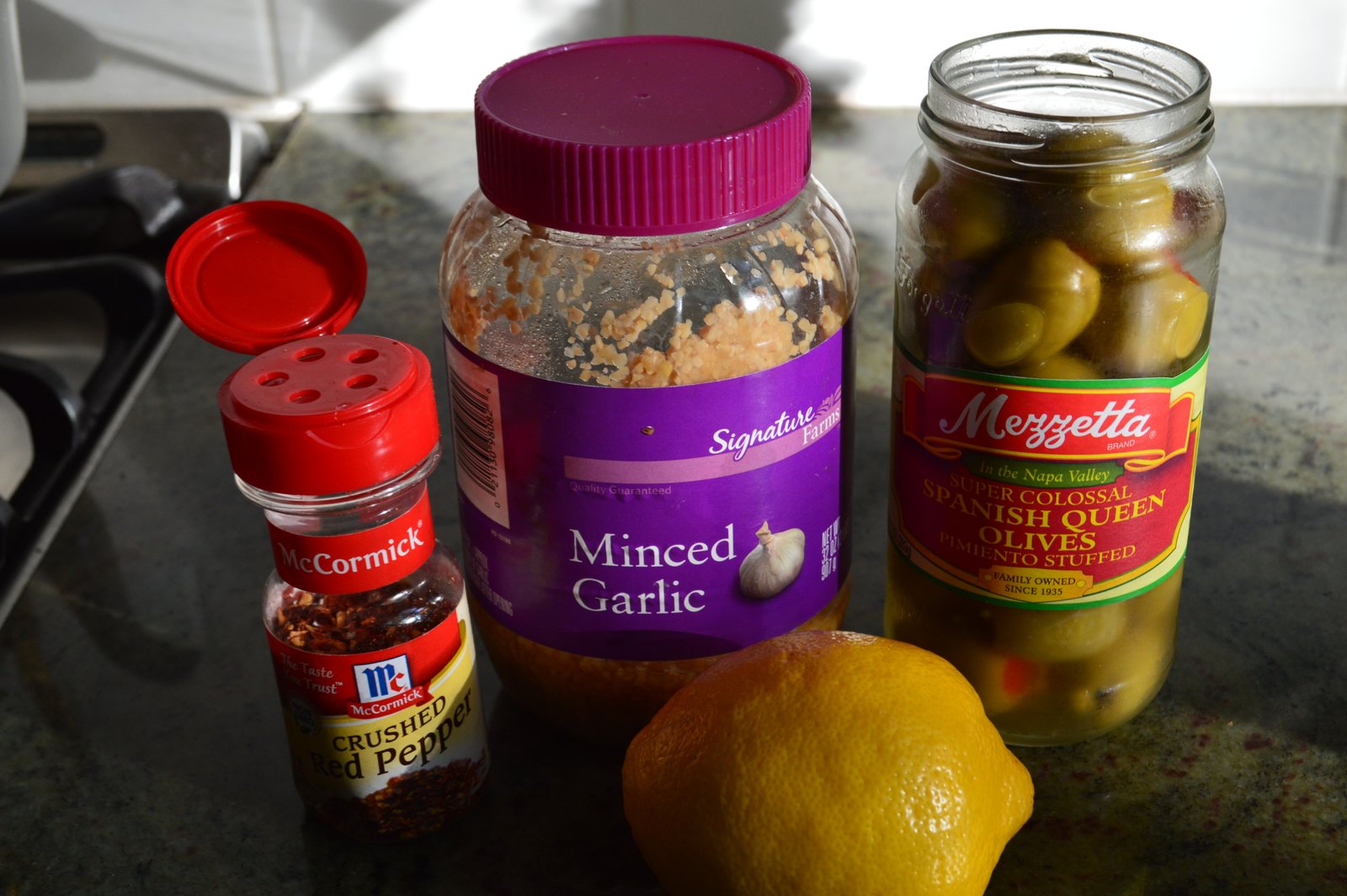Start with a jar of olives, any kind...stuffed, un-stuffed, green, Kalamata, even black! This is easy, takes 5 minutes and will rock your olive-lovin'-world!