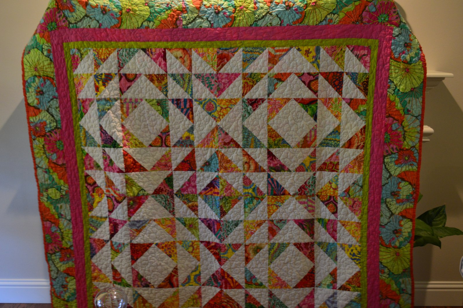 This is just HAPPY! Diane made this quilt using Kaffe fabrics and it is bright and happy and we all loved it...Diane is not entirely sold on this yet - these are not usually the colors she works with but given some time I know Diane will come to love this as much as we do! Diane told us she was "thinking like Helen" when she decided to make this quilt...we all want a "Helen Quilt" for ourselves and now Diane has one!