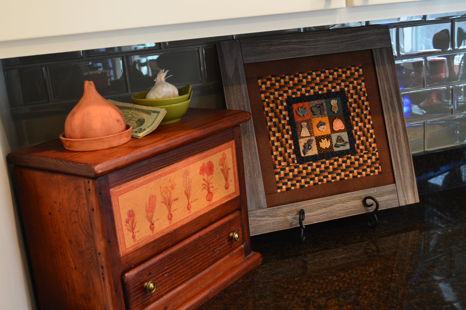 These are the kind of pictures you'd find in Country Living Magazine or Southern Living, right? Or maybe the kind you'd want to find! Terry frames her hand-work with such care - always matching the frame to the piece. Thanks Terry for the great meeting/lunch/show!