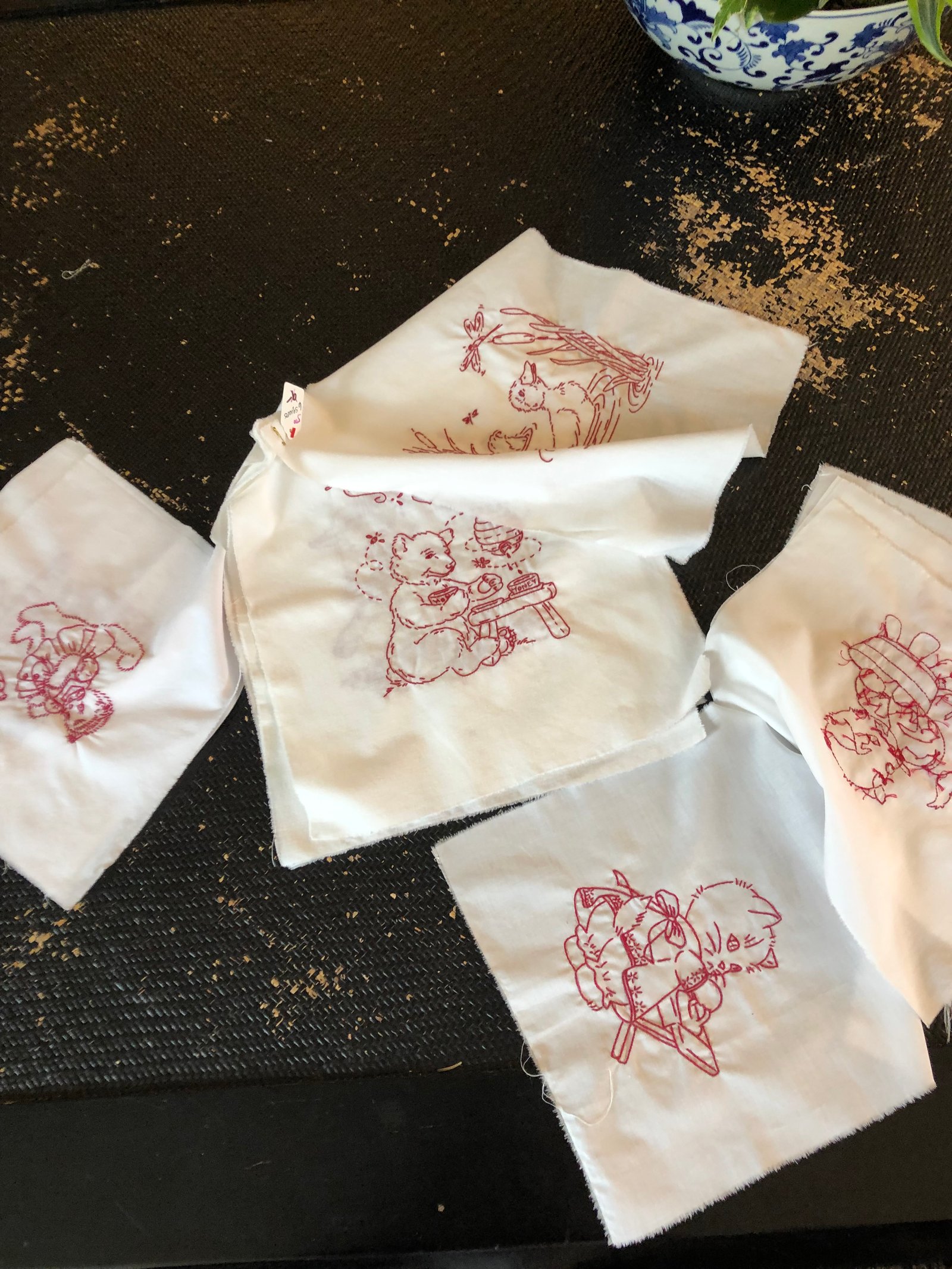 Stephanie was definitely in the right place at the right time when she spotted these red-work blocks. She purchased them from the Snoqualmie Senior Center Thrift Shop...so now I've added that to my list of places to haunt, Stephanie can't have all the fun!