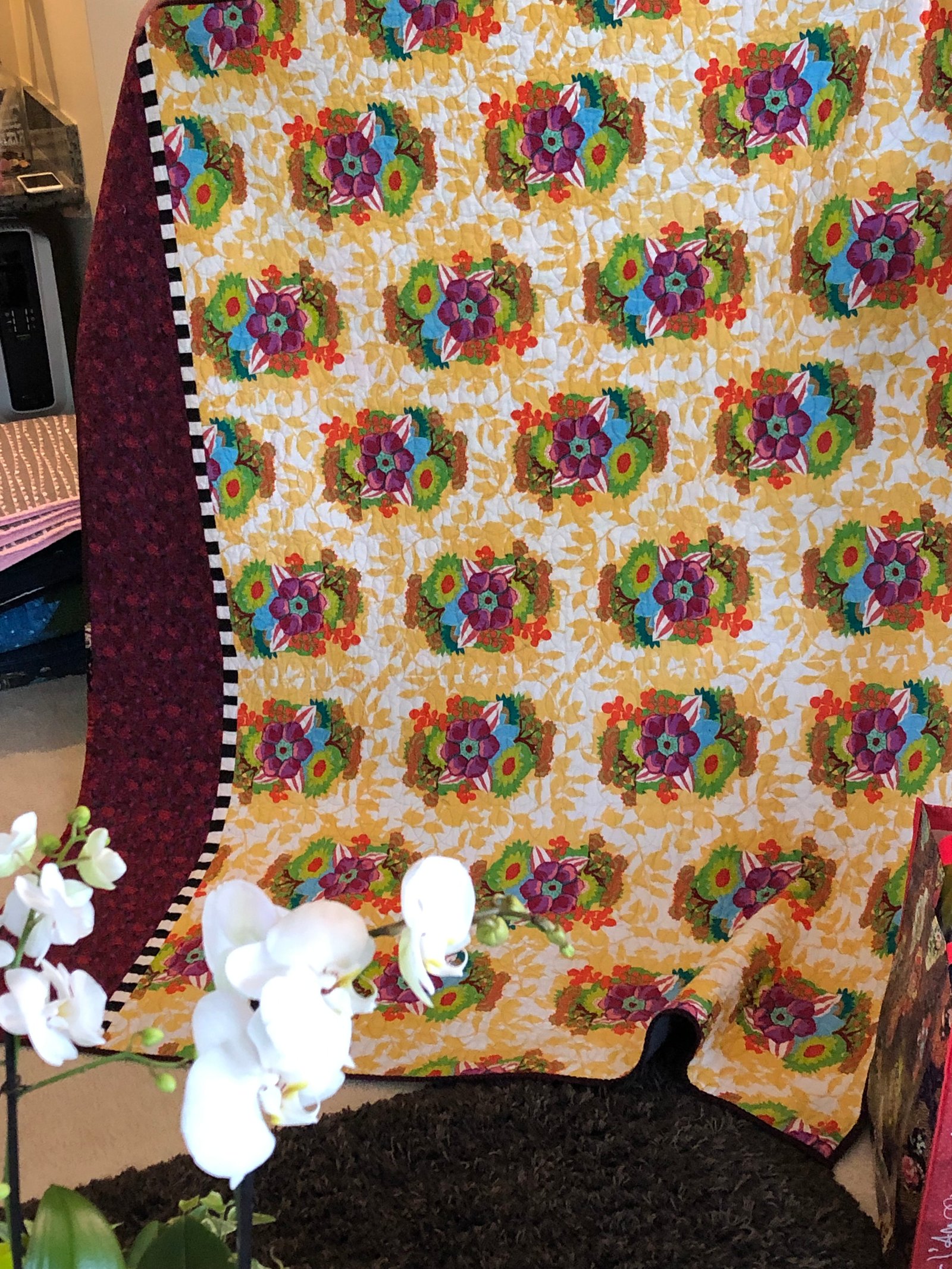 We hadn't seen Kareena for a while so it was great that she hosted us and even better that she had a stack of quilts to show (I failed to get pictures of all of them - so sad about that!) This Sasquatch quilt has been on my "to make" list for quite some time...I need to get it done before my grandson Max grows up! He and I still go Sasquatch hunting in the forest (our neighborhood park) and I'm not sure how long we'll be able to do that before he realizes his grandma is nuts.