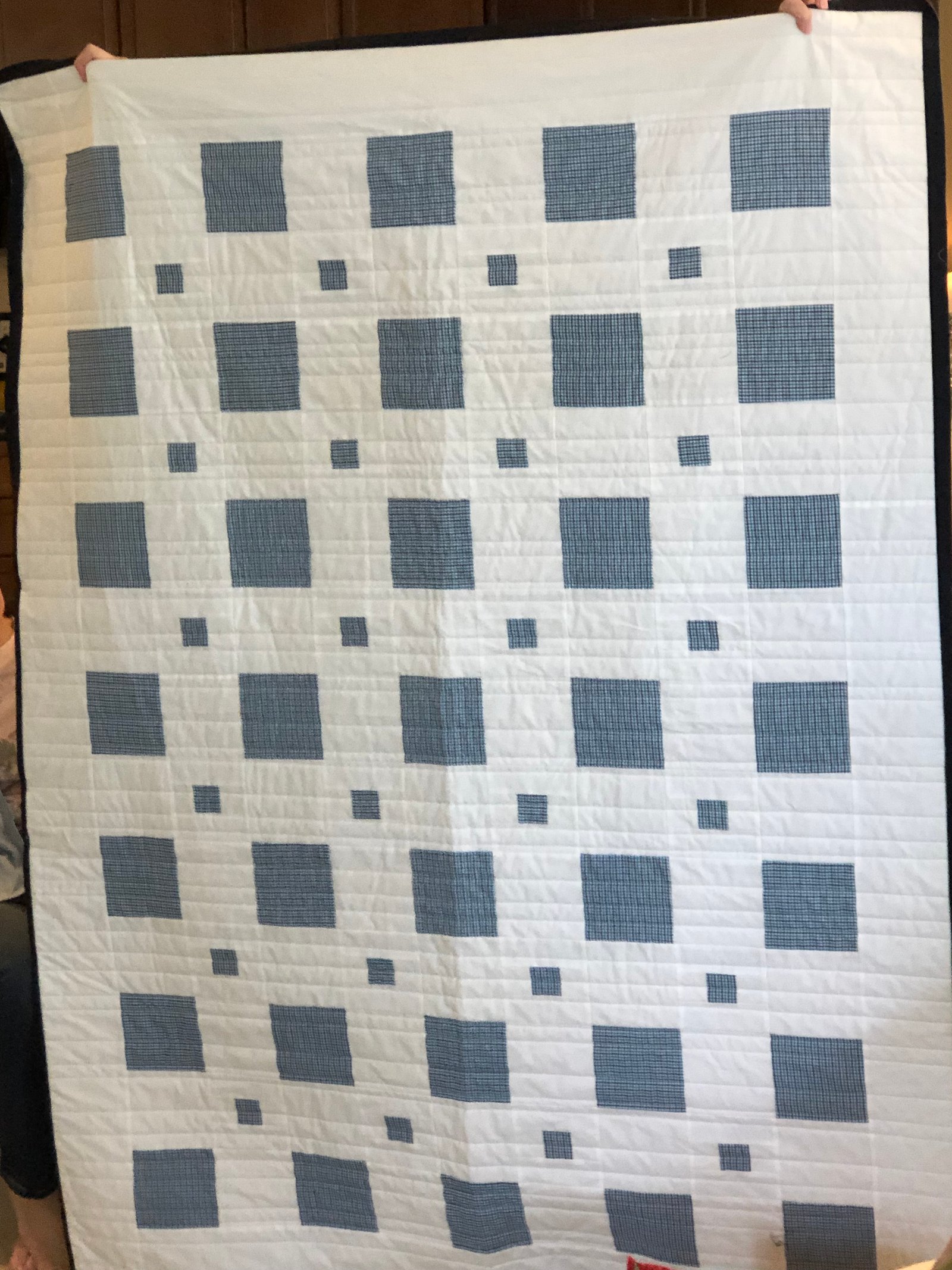 Kareena started off our show with this "shirt quilt" made from one of her dad's shirts. I think she said she made three of these quilts, each quilt made entirely from one shirt. I found a video on YouTube for cutting up a man's shirt; if you've ever thought of making a shirt quilt you need to know how to maximize the shirt to get the most blocks, click here to watch. It's kind of mind-boggling to me to think this quilt was made from one shirt - well, plus the background fabric.