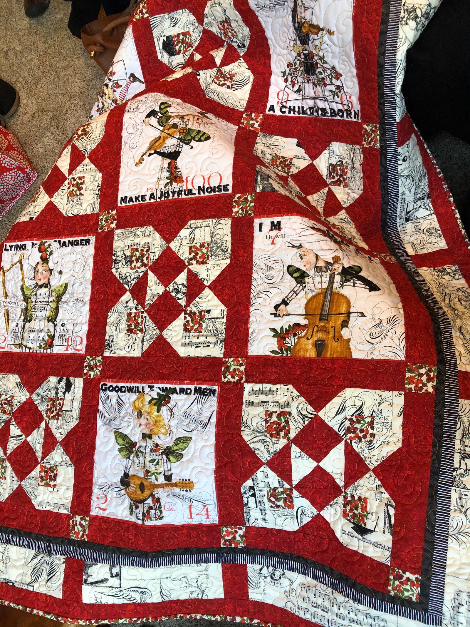This is another one of Janet's Christmas quilts. She purchased a panel and then cut it up and made the quilt - it turned out so nice and I love the music fabric! Two Christmas quilts done - that's got to make a girl feel good!