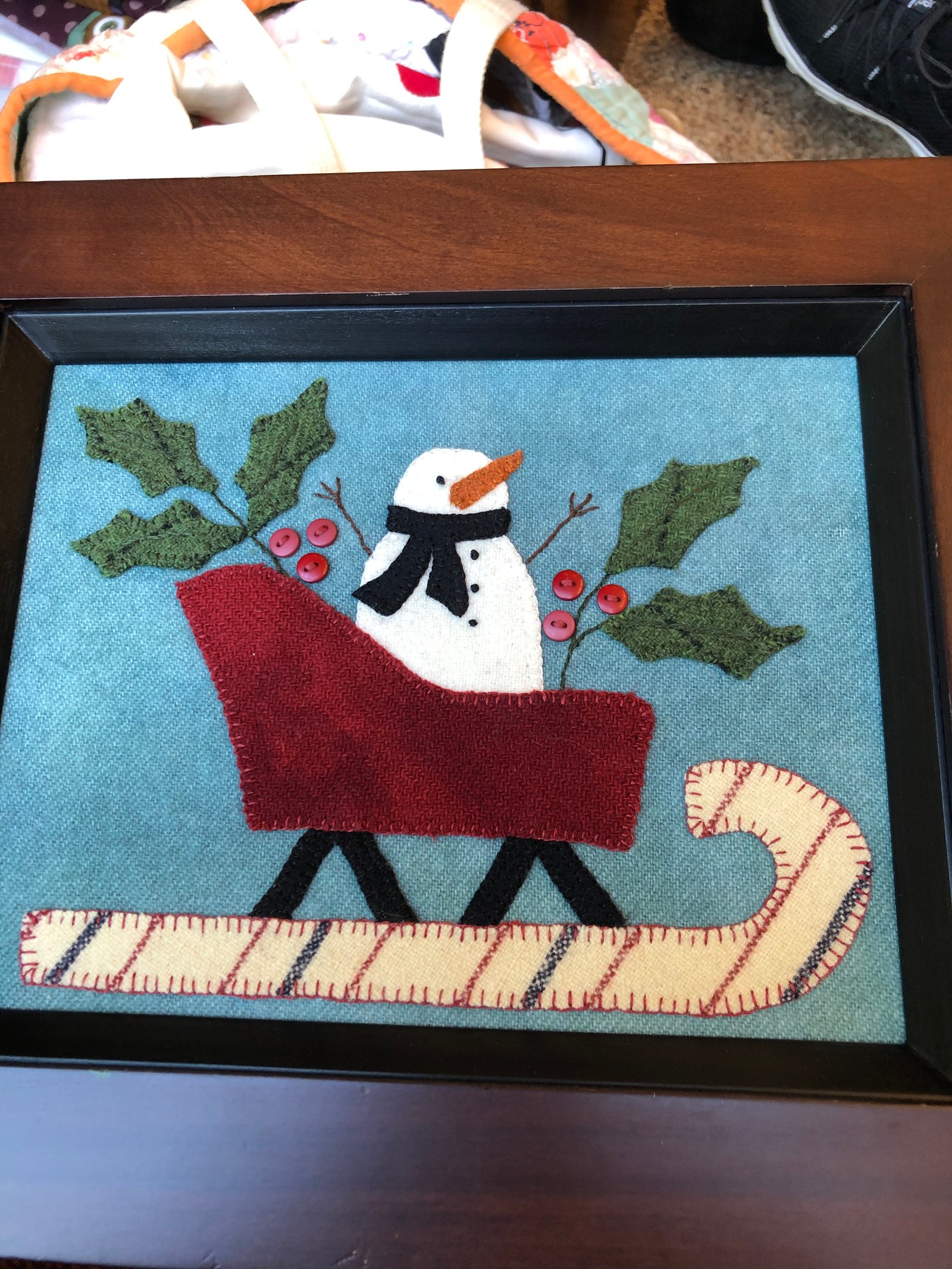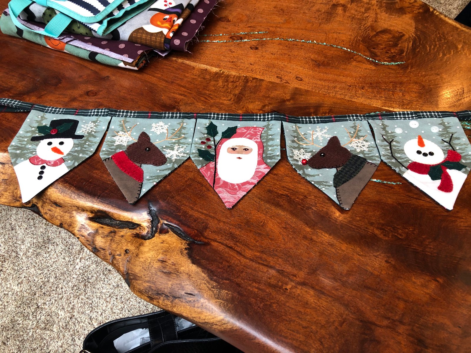 Jenny also made this darling Christmas banner, which is a kit of sorts. The kit includes the background fabrics and the instructions but I don't think it included the wool - maybe so, can't remember. Jenny did such a nice job appliqueing the pieces on!