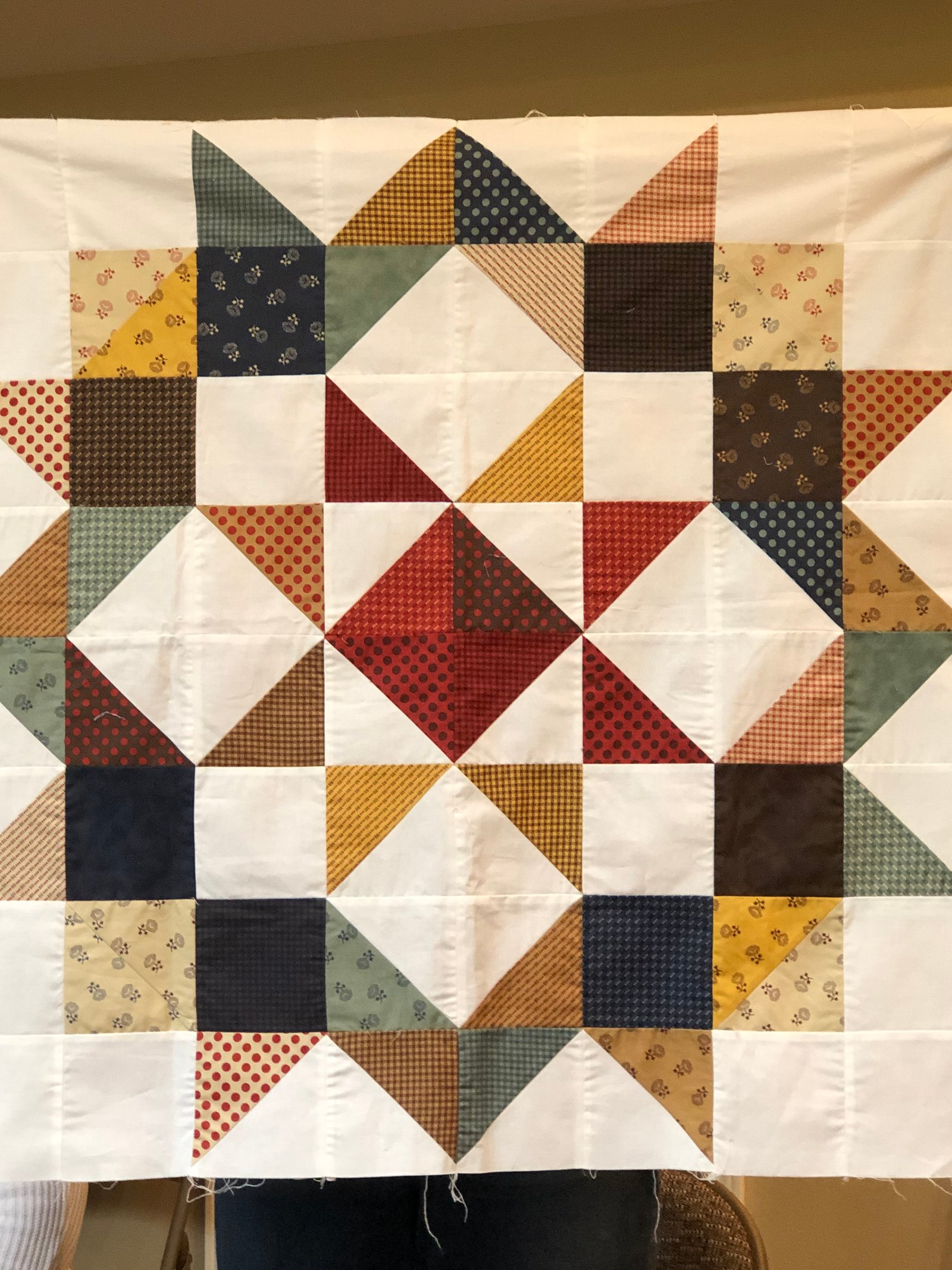 This is Deborah's Millennial quilt. She started it in 2000, and it has over 2000 pieces of fabric with only one repeat!!! This picture just does not do it justice - it is truly a work of art! Just think about working with all of those little pieces AND creating a complex pattern! Mind blown!