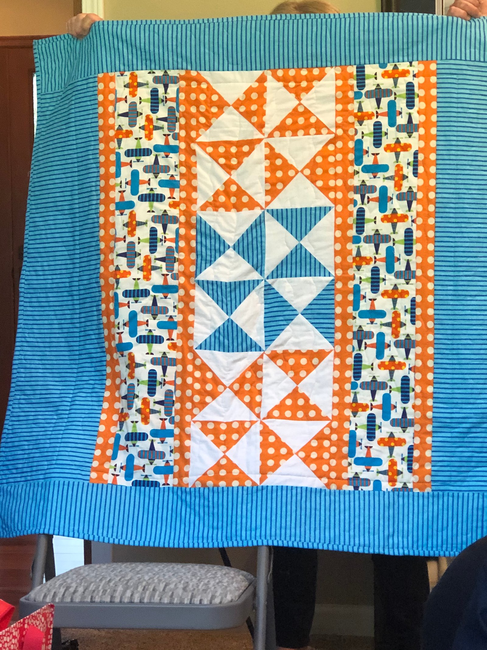 Marsha brought in the baby quilt she made to show us how she finished it. The back is a whole nuther quilt! It is SO hard to get a pieced back on straight but Marsha managed to do it - it's perfect! Way to go Marsha!