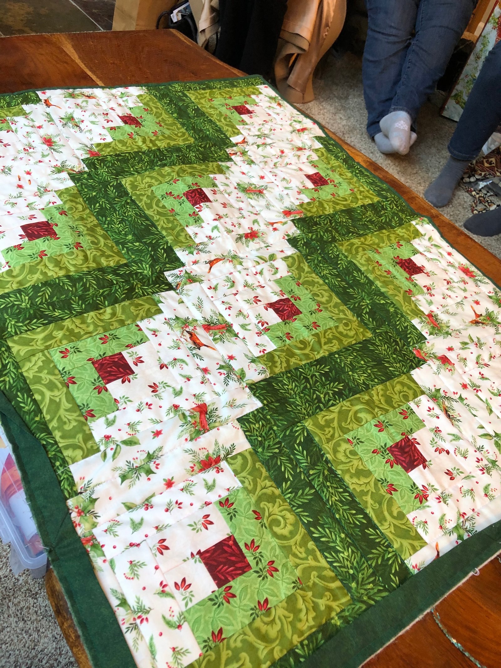 This sweet Christmas table square was made by Denise. I love all of the fabrics she used - especially those lighter greens. This just needs the binding and it's done and ready to grace her table! Or maybe Denise made it for a Christmas gift...like for our group's gift exchange...maybe...
