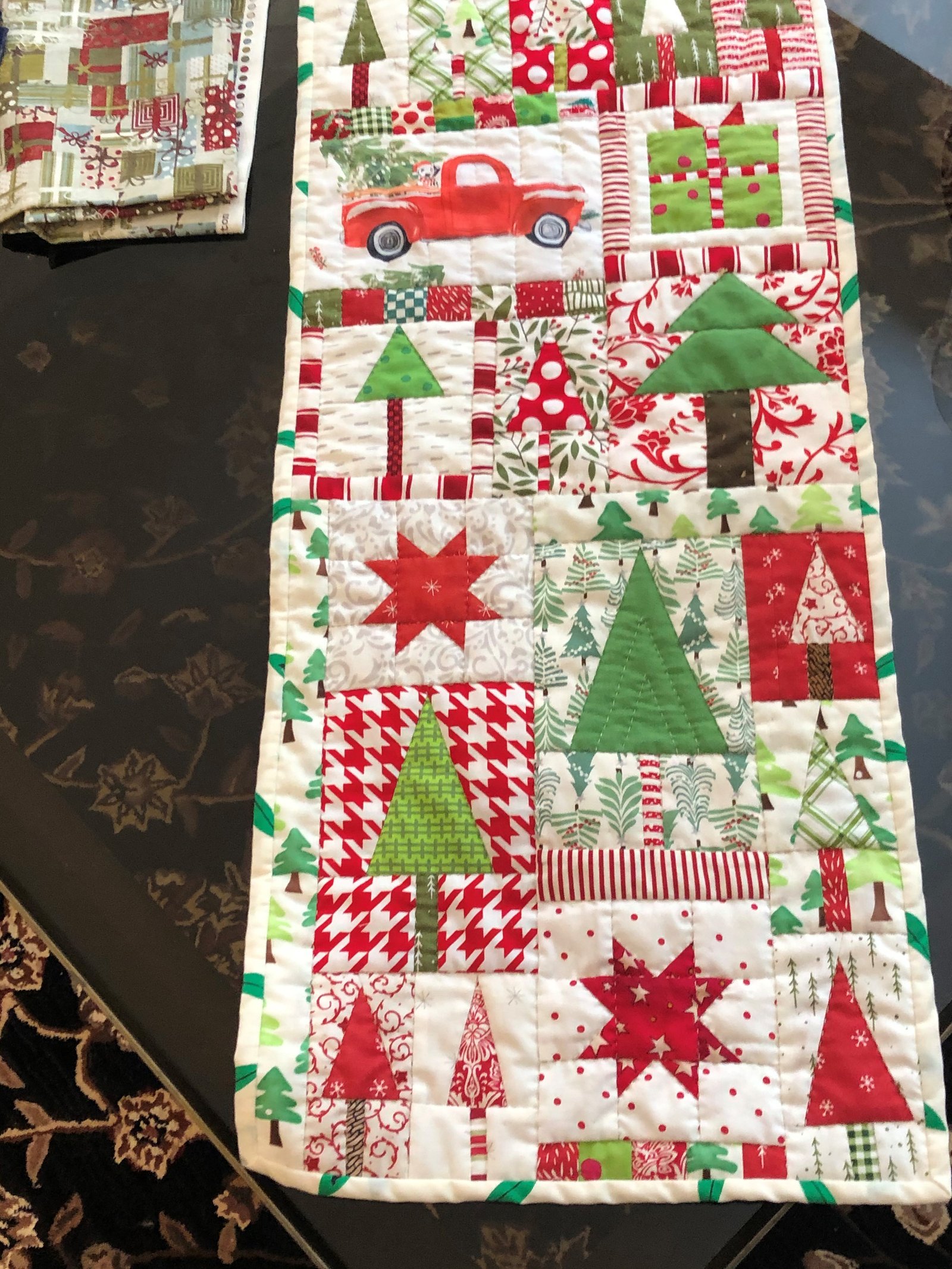 Helen finished hand-quilting this Christmas wall-hanging...she said she was able to work on it, even while being on drugs from a knee replacement...all I can say is we should all be taking those drugs because look how perfect this is!! I've been hand-quilting a quilt for the last three months, every night in front of the telly and my titches are no where near as small or as straight as Helen's...seriously, pass the Oxy, my hand-quilting could use some help!
