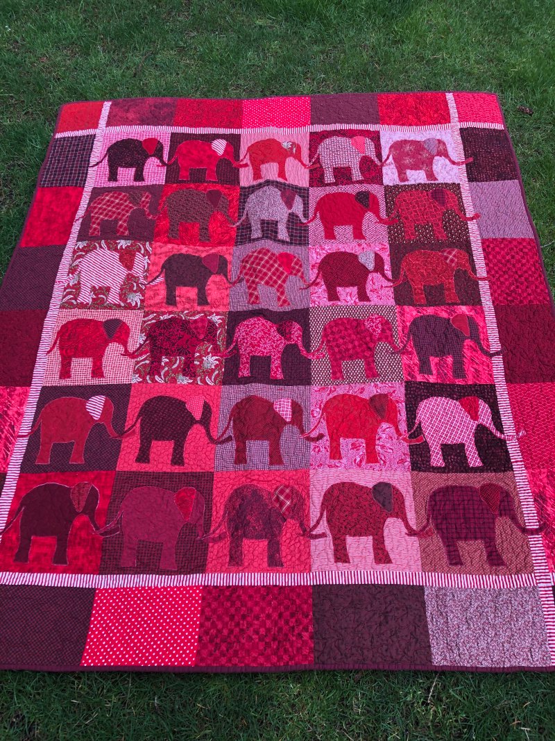 After seeing Janet's quilt again I kind of wish my quilt didn't have borders - I love how hers was finished without them. I also think it's very brave of me to post a picture of my quilt next to Janet's...I'm rather insecure about these things, especially since I noticed several of my elephants are missing their tusks! And some of their tails are cut off rather abruptly...Janet's elephants were raised in better conditions than mine!