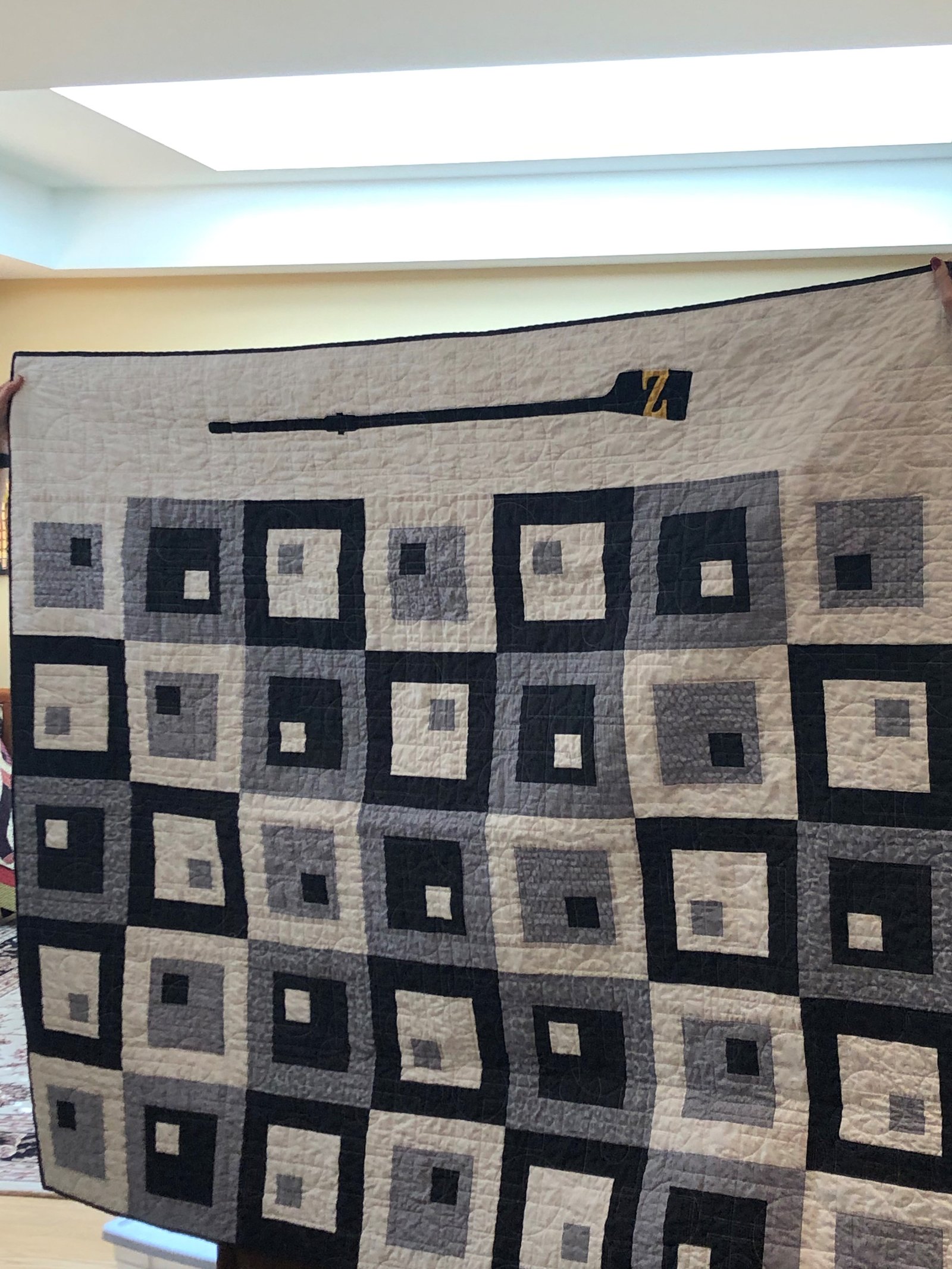 You might recall seeing this quilt before, made by Kareena - she said she didn't like it and we told her once it's quilted she'd love it. Well it's quilted and she still doesn't like it! But Kareena found a brilliant way to make sure this quilt is loved the way it should be...she has a sister who belongs to a rowing club so she added the club's oar logo to the border and she's giving the quilt to her sister. We all loved that!