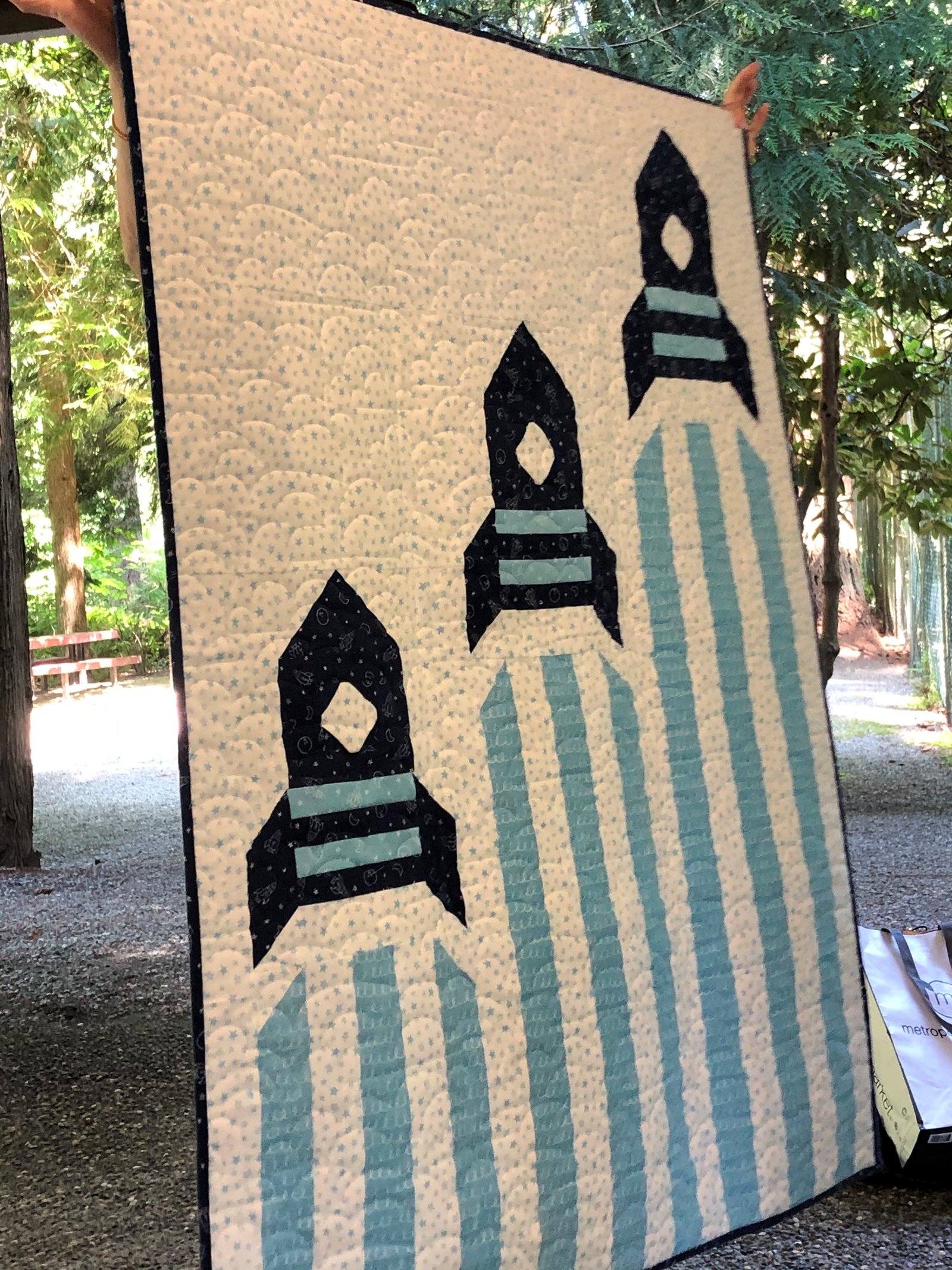 I think Kareena made this quilt for a friend's baby boy - can you just imagine how her friend will be when she opens her gift and finds this?? We all ooohed and aaahed over this one, it's clever and fun and so cute!