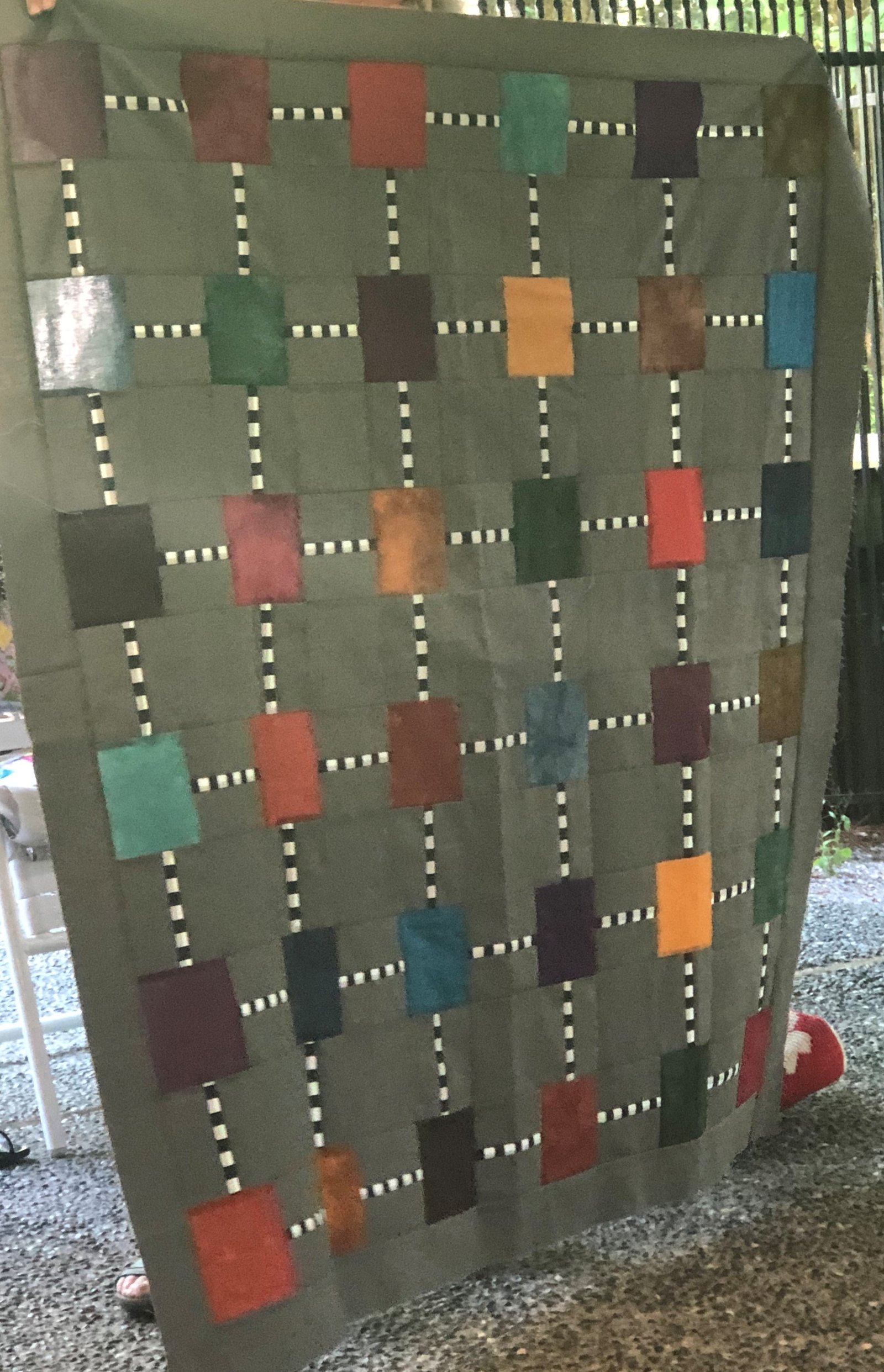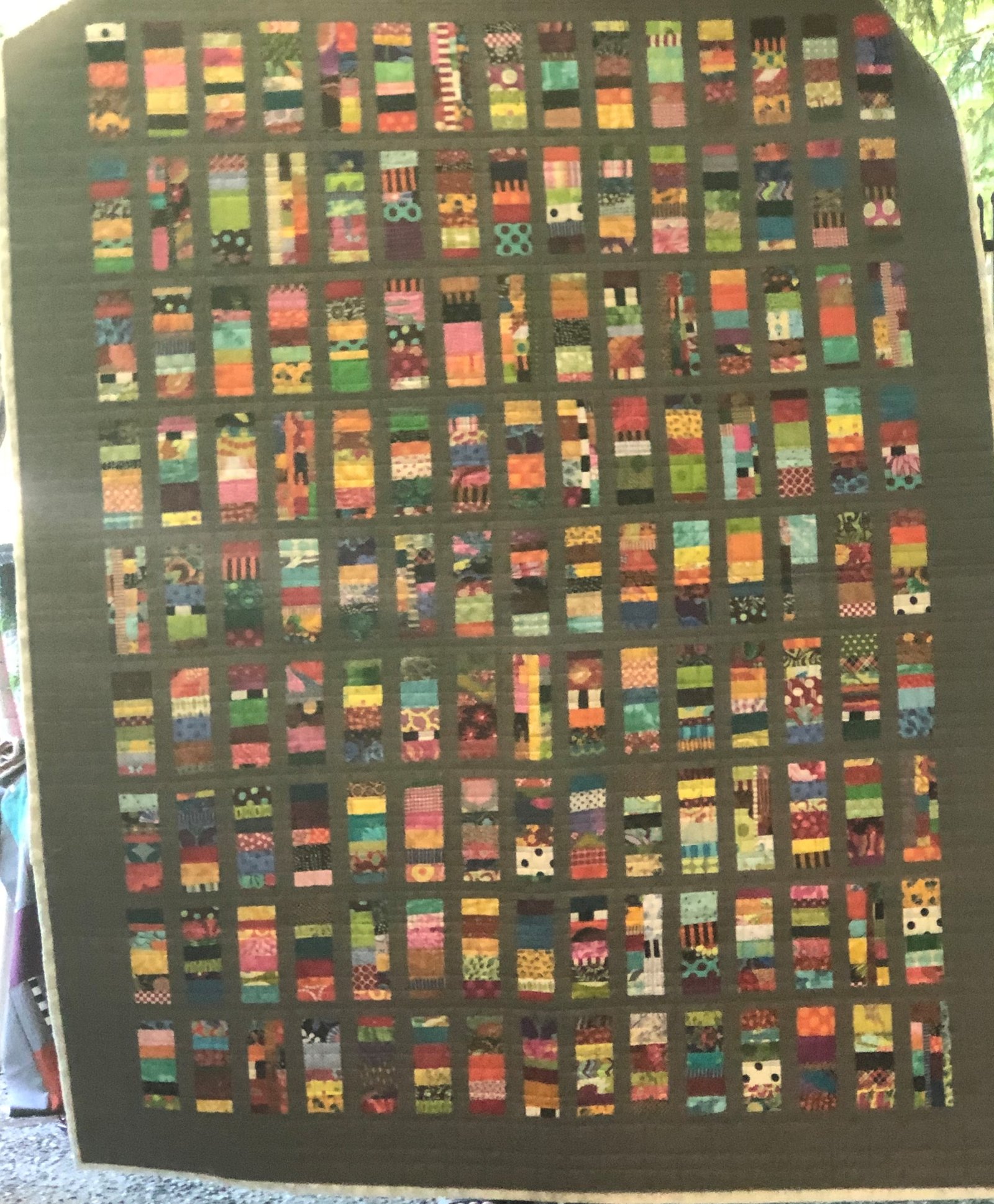 Barbara has been busy during quarantine, like the rest of us, finishing up older projects. This quilt reminds me of cherry 7-Up or raspberry lemonade! It's happy! I love the scrapiness of this quilt which also gives it a vintage feel. Way to go Barbara!
