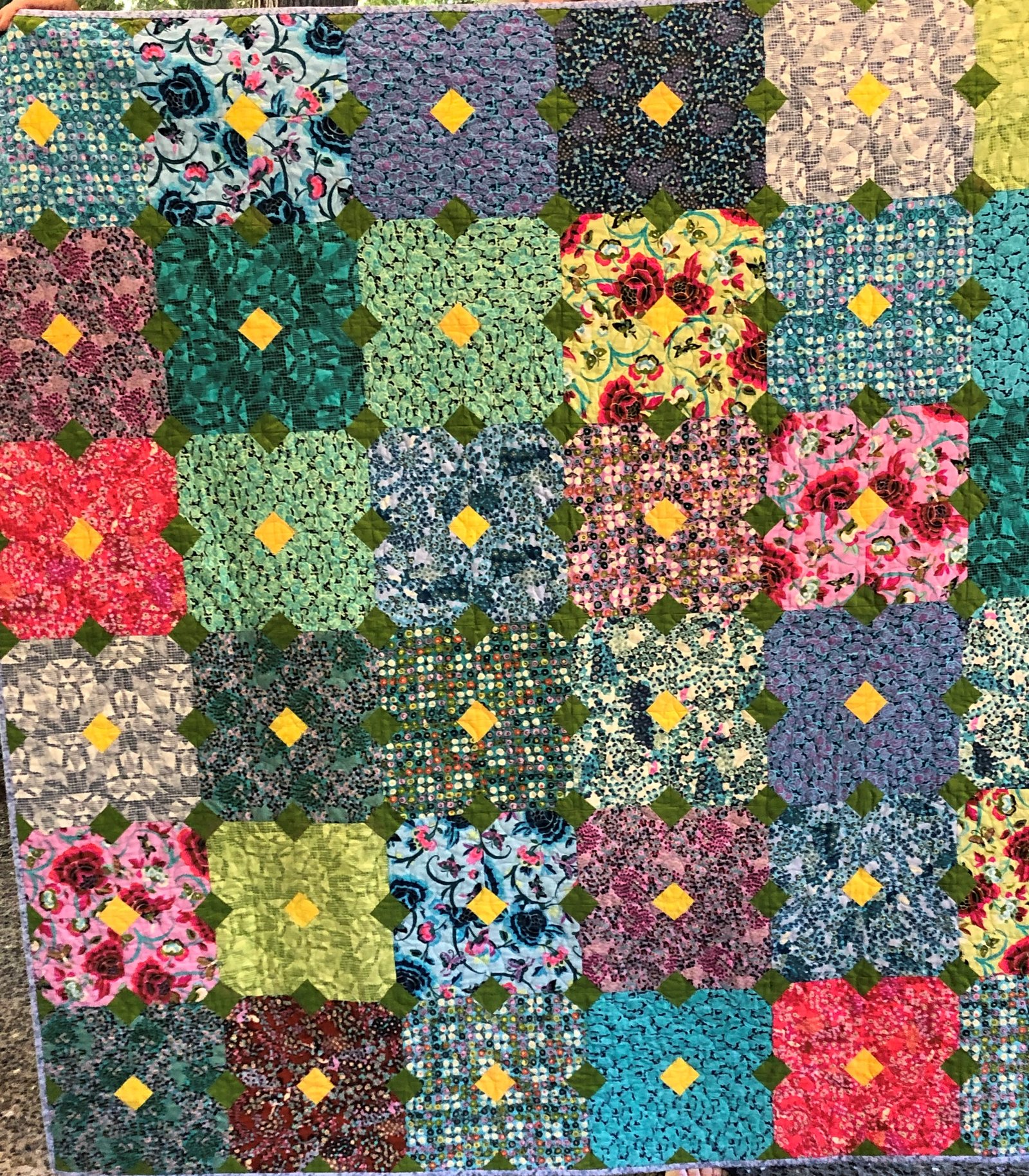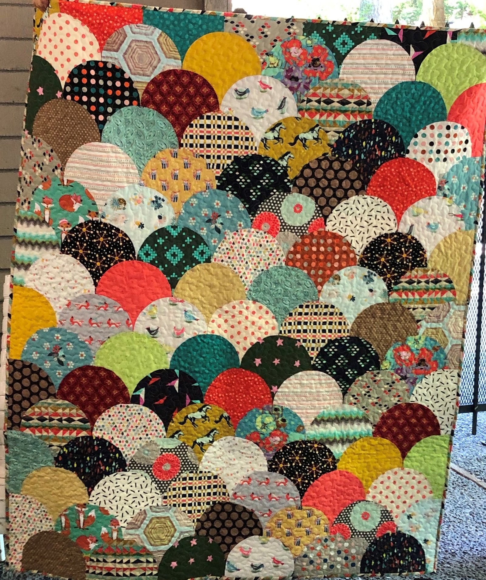 Barbara also made this clam shell quilt. She said it was easy but c'mon, we all know circles are NOT easy! I love the fabrics, foxes, birds and horses playing in the clams. I think we can all thank Covid for giving us more time to quilt, almost everyone at our quilt group had a quilt or two or three to share. Barbara managed to finish up 4 quilts during the last 4 months!