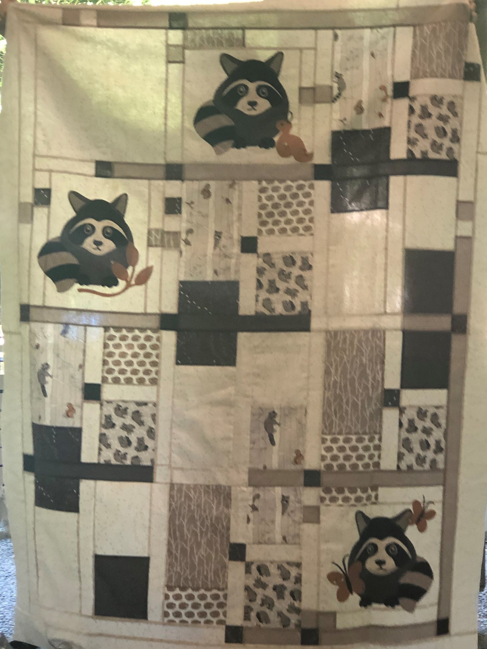 Janet made this top, too, according to her she's "into animals" lately! Maybe it's because she has a new grandson? Whatever the reason, this one is sure darling and those raccoons aren't a panel, they are appliqued!