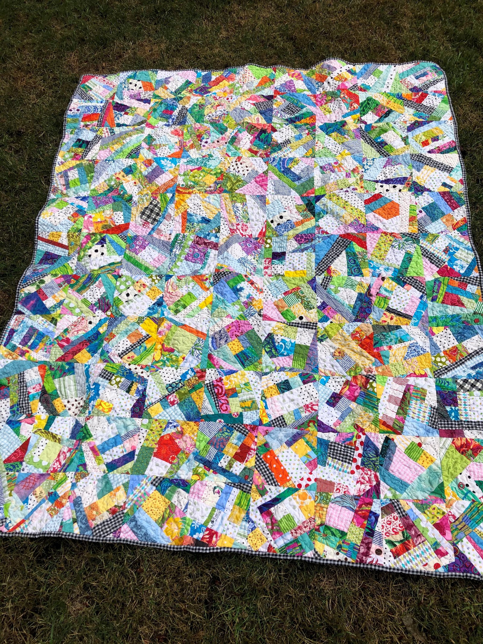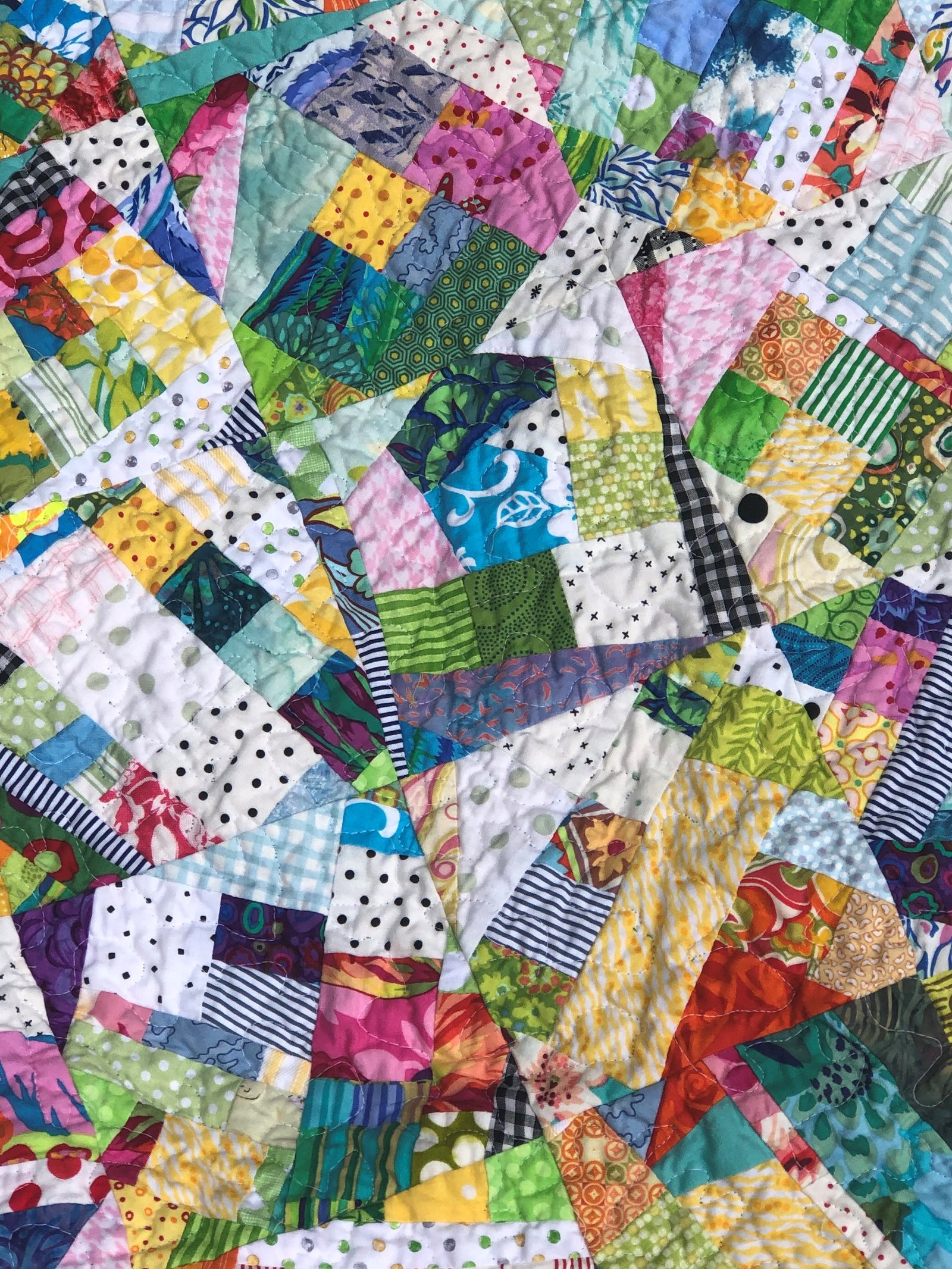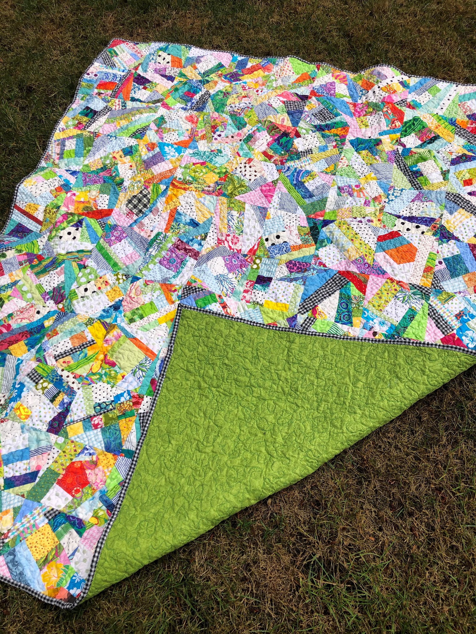 No scrap was too small or too ugly and while I thought I was doing a great job busting through my pile, I could probably make another 5 quilts before I make a dent! I didn't worry about what matched or if the fabric was on the straight of grain - I just grabbed and sewed. I could call this quilt All Fabrics Go Together just as easily because when you stand back and look at this, they do!